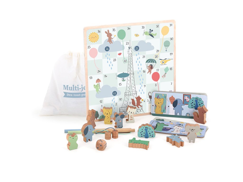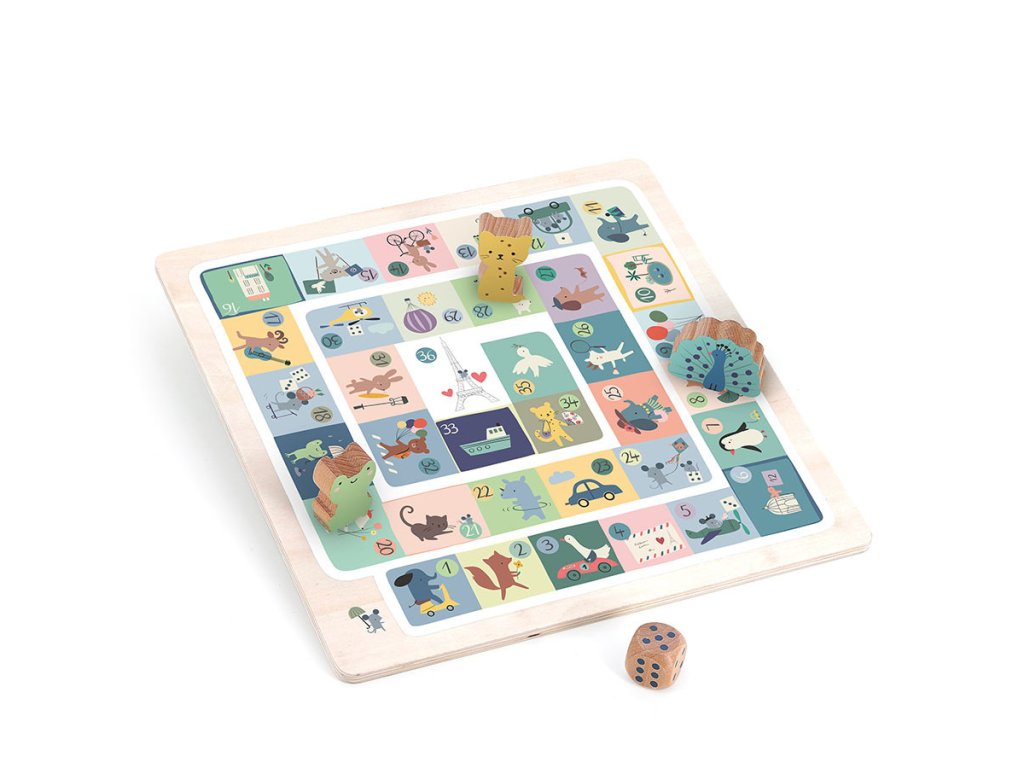 Roztomilé zvieratká z krásne ilustrovanej drevenej hernej sady si zamilujú deti už od 2 rokov veku. Hry sprevádzajú jemné kresby výtvarníčky Sarah Betz a zvieratká ožívajú v každej zo štyroch klasických hier – husacej hre, hadoch a rebríkoch, bingu a magnetickom rybárčení. Jednoduché pravidlá, farebné prevedenie a možnosť striedania aktivít robí z tejto sady ideálneho spoločníka pre prvé zoznamovanie s hrami. Dieťa si pri hre prirodzene osvojuje základné počítanie, učí sa hádzať kockou, rozlišovať obrázky, čakať na svoj ťah a vnímať pravidlá. Rybárčenie pomáha zlepšovať koordináciu ruka-oko a jemnú motoriku, zatiaľ čo bingo trénuje pamäť a sústredenie. Sada je vyrobená z dreva a je uložená v praktickej krabici, ktorá uľahčuje skladovanie. Skvelý spôsob, ako si spoločne užiť chvíle plné smiechu, učenia a zdieľania. Ideálna ako prvá spoločenská hra pre celú rodinu. Obsah balenia: 1 obojstranná herná doska z dreva4 kartičky s motívmi pre obrázkové bingo2 drevené rybárske prúty1 drevená hracia kocka12 drevených žetónov so zvieratkami1 pevná krabica na uloženie všetkých častí Hlavné vlastnosti: štyri hry v jednom balenídrevené prevedeniepodporuje prvé matematické zručnostirozvíja koordináciu ruka-okostimuluje pamäť a koncentráciuučia rešpektovať pravidlávytvára priestor pre spoločné chvílepodporuje sociálne zručnostiprispôsobené veku a tempu dieťaťavhodné pre celú rodinuilustrácie Sarah Betzvhodné pre deti od 2 rokovDodatočné parametre