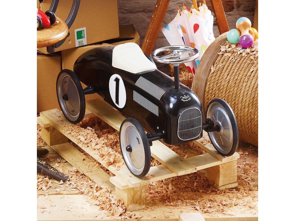 Odrážadlo Vintage v štýle pretekárskeho auta je plne kovové a má čiernu metalickú farbu. Volant ovláda zatáčanie predných kolies. Biele sedadlo je vyrobené z plastu. Kolesá odrážadlá sú pogumovaná a zaručujú tak tichý chod aj na pevnom povrchu. Hlavné vlastnosti: stabilné kovové odrážadlo s pogumovanými kolesamištýlový originálne dizajnenosnosť 20 kgDodatočné parametre
