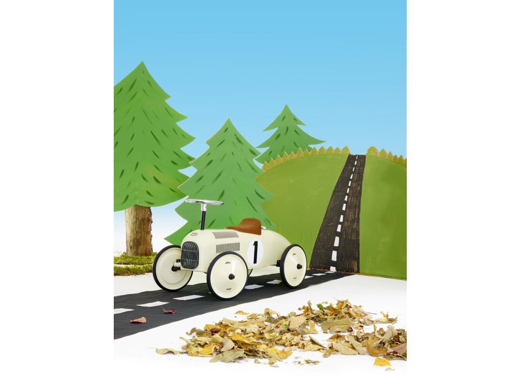 Odrážadlo Vintage v štýle pretekárskeho auta je kovové a má krémovú metalickú farbu. Volantom sa ovláda otáčanie predných kolies. Hnedé sedadlo je vyrobené z plastu. Kolesá sú pogumované, a tak zaručujú tichý chod aj na tvrdom povrchu. Hlavné vlastnosti: stabilné kovové odrážadlo s pogumovanými kolesamištýlový originálny dizajnnosnosť 20 kgDodatočné parametre