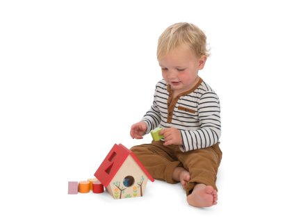 Táto roztomilá vkladačka v dizajne vtáčej búdky bude perfektnou hračkou pre deti, ktoré sa učia spoznávať tvary a farby.